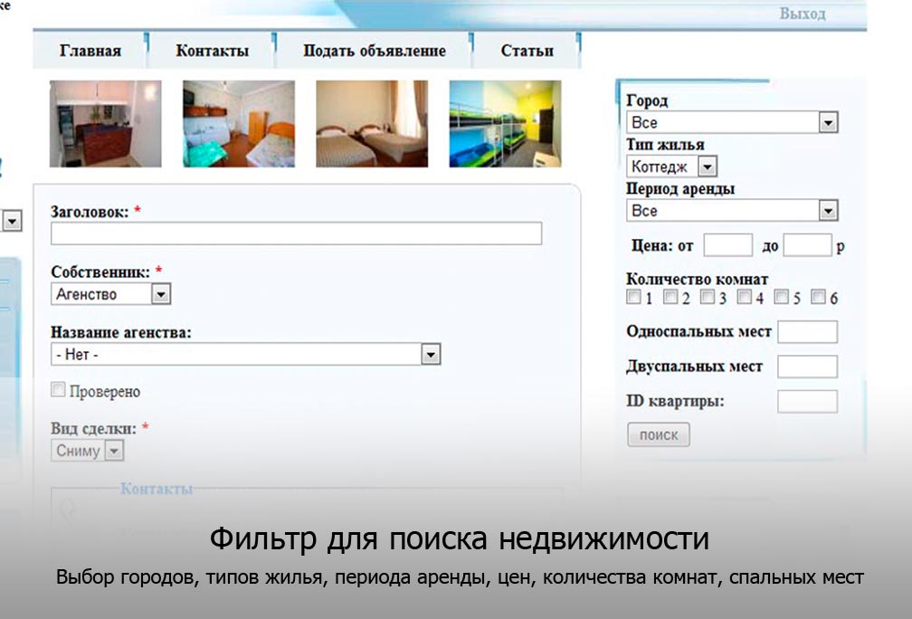 Сайт по аренде различных видов недвижимости, реализованный с большим количество полей с материалах с целью выполнить все необходимые пожелания клиента.
