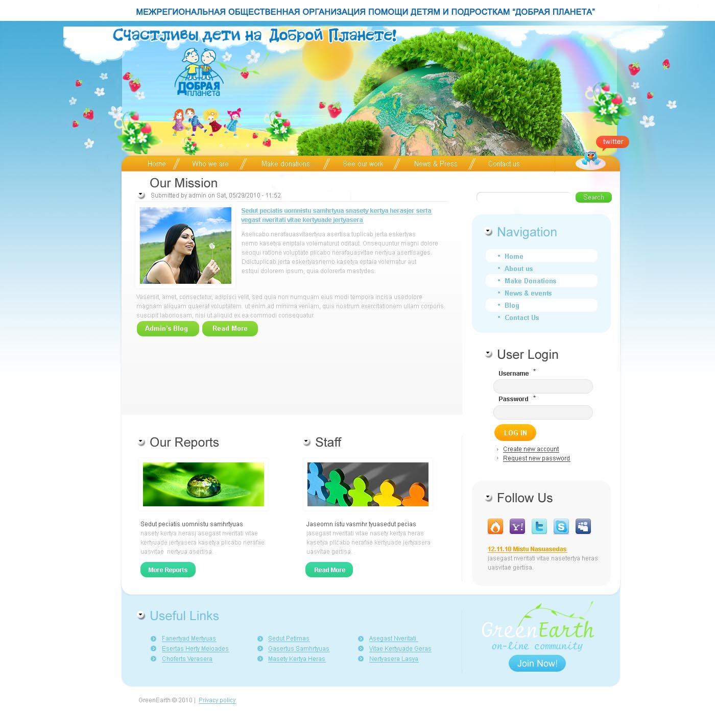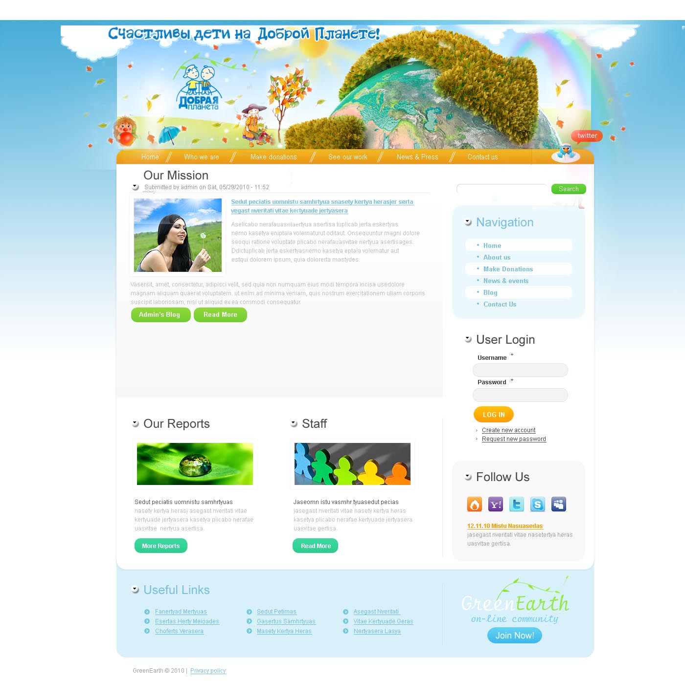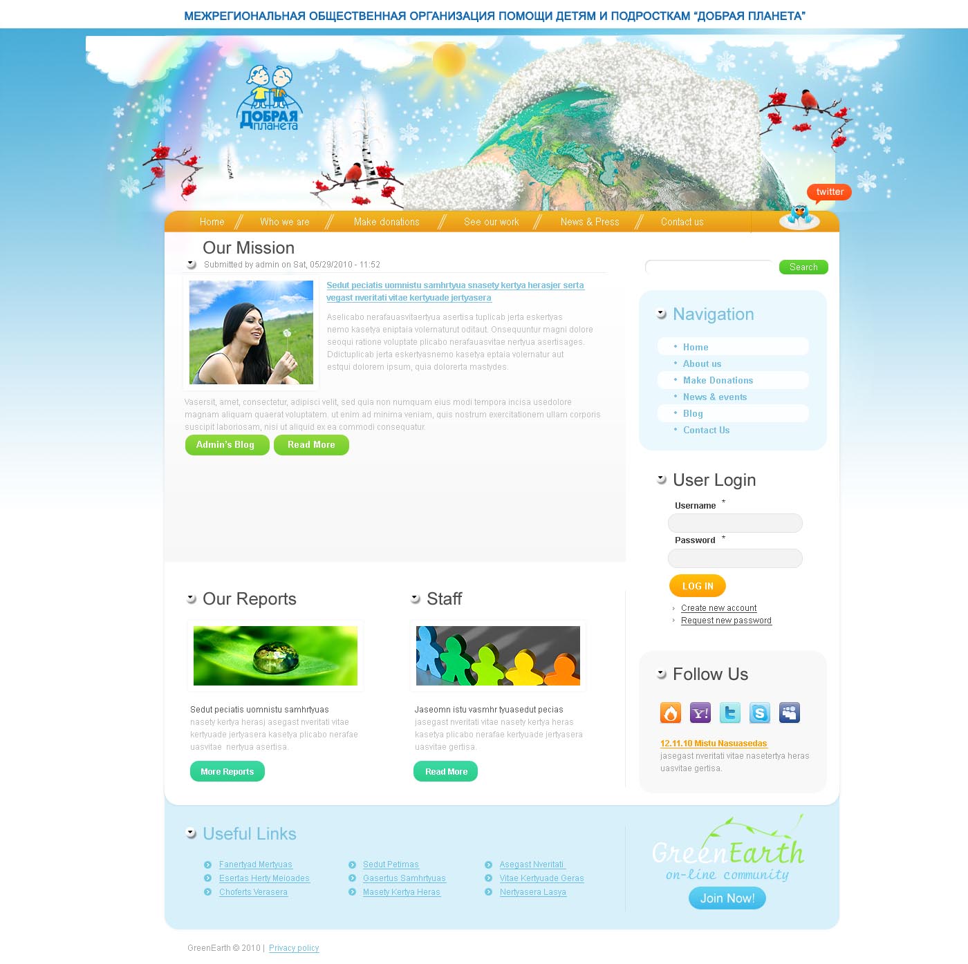 Был разработам макет для социального проекта для детей "Добрая планета", который подразумевал изменение шапки сайта в зависимости от сезона.
